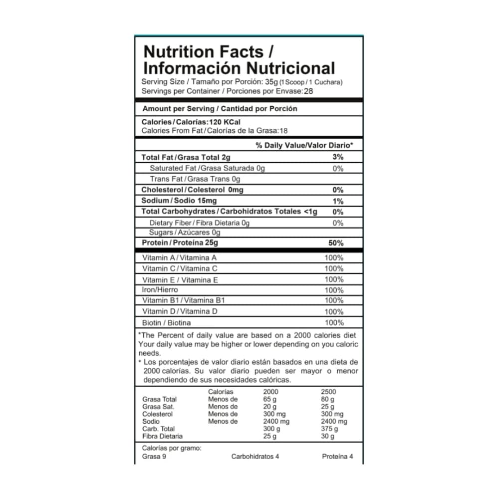 25 g de proteína vegetal limpia por porción.