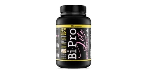 Bi Pro Lite is a clean protein designed for women, combining whey, casein, hydrolyzed collagen, L-carnitine, and chromium picolinate. It provides 26g of protein per serving, supports lean muscle mass, toning, satiety, and recovery, with a low carbohydrate and fat content.