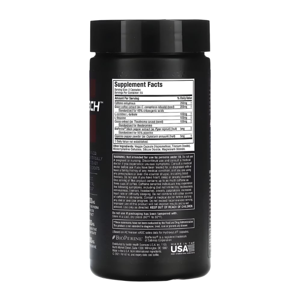 Hydroxycut Elite es un termogénico avanzado que combina cafeína anhidra, extracto de café verde y otros ingredientes que aumentan la energía, aceleran el metabolismo y favorecen la quema de grasa. Ideal para mejorar definición, rendimiento y enfoque durante el entrenamiento.