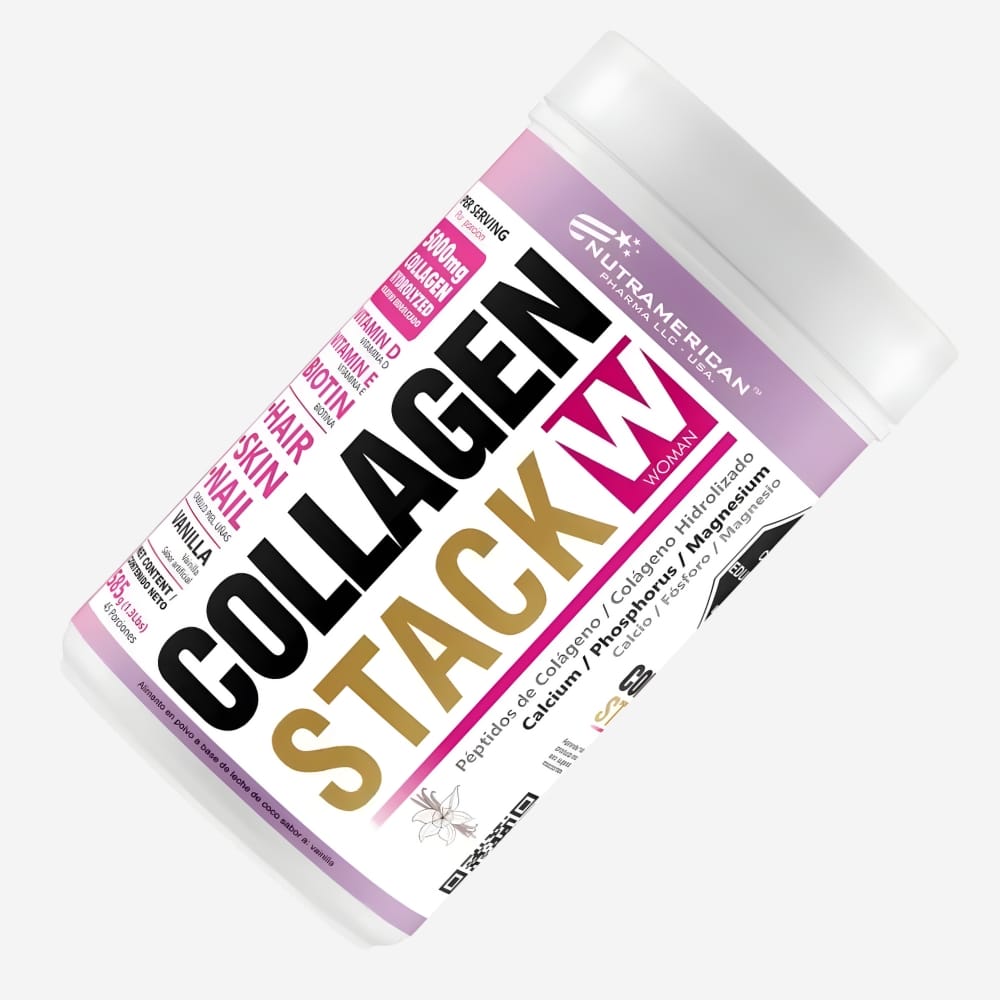 Colágeno Hidrolizado Collagen Stack Woman es un suplemento avanzado diseñado para apoyar la salud de la piel, cabello, uñas y articulaciones. Su fórmula con colágeno, biotina, vitaminas y minerales ofrece alta absorción y mejora integral del bienestar femenino desde adentro.