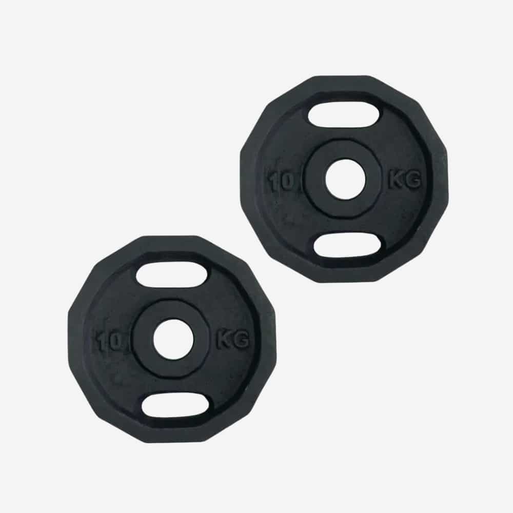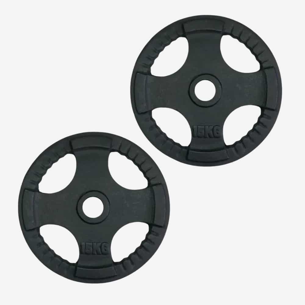 Los Discos Olímpicos son pares de discos en hierro fundido con hueco de 2″, compatibles con barras olímpicas estándar. Su material sólido garantiza resistencia y durabilidad en entrenamientos exigentes. Ideales para fuerza, levantamiento y rutinas profesionales o domésticas.