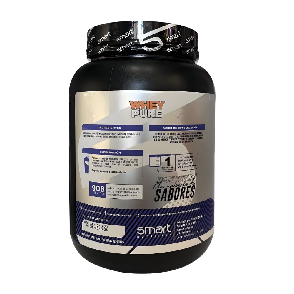 Whey Pure Smart Nutrition es una proteína limpia de suero, endulzada con Stevia, que aporta 26 g de proteína por porción sin azúcar, grasas ni carbohidratos. Ideal para perder peso, definir músculo y mantener una nutrición ligera, pura y efectiva con excelente digestión y sabor natural.